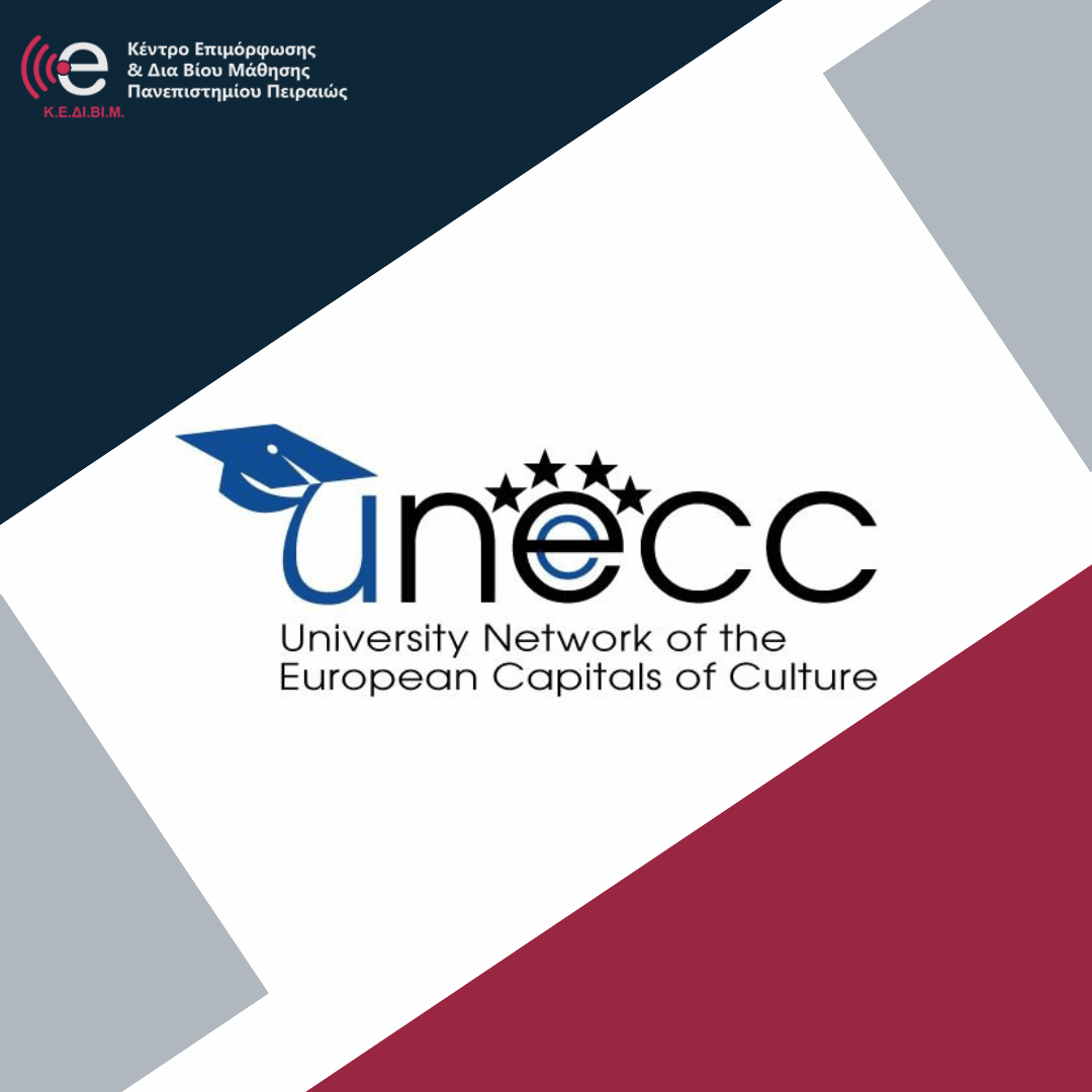 Σας γνωρίζουμε πως από τον Μάρτιο του έτους 2024, το Κ.Ε.ΔΙ.ΒΙ.Μ. του Πανεπιστημίου Πειραιώς αποτελεί πλέον μέλος του University Network of the European Capitals of Culture (UNeECC), γεγονός που συμβάλλει στην εξωστρέφεια του Κέντρου.
